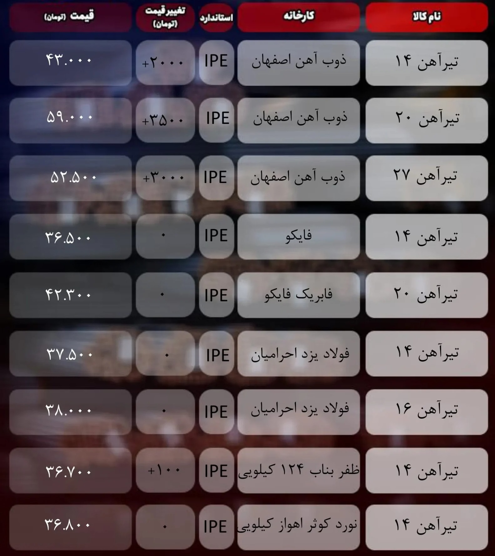 تیرآهن ۱۴ فایکو هم با قیمت ۳۶ هزار و ۵۰۰ تومان به فروش میرود.
